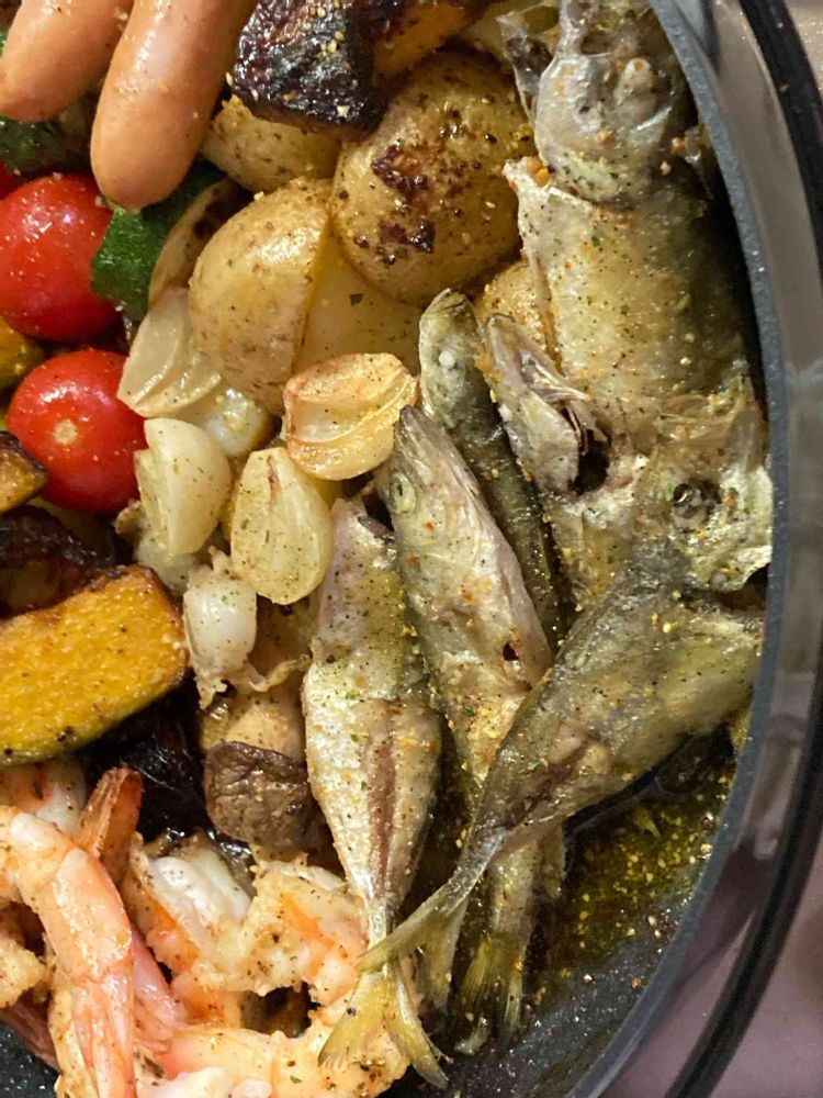 アヒージョは、オリーブオイルで揚げるので、だいたいの食材なら