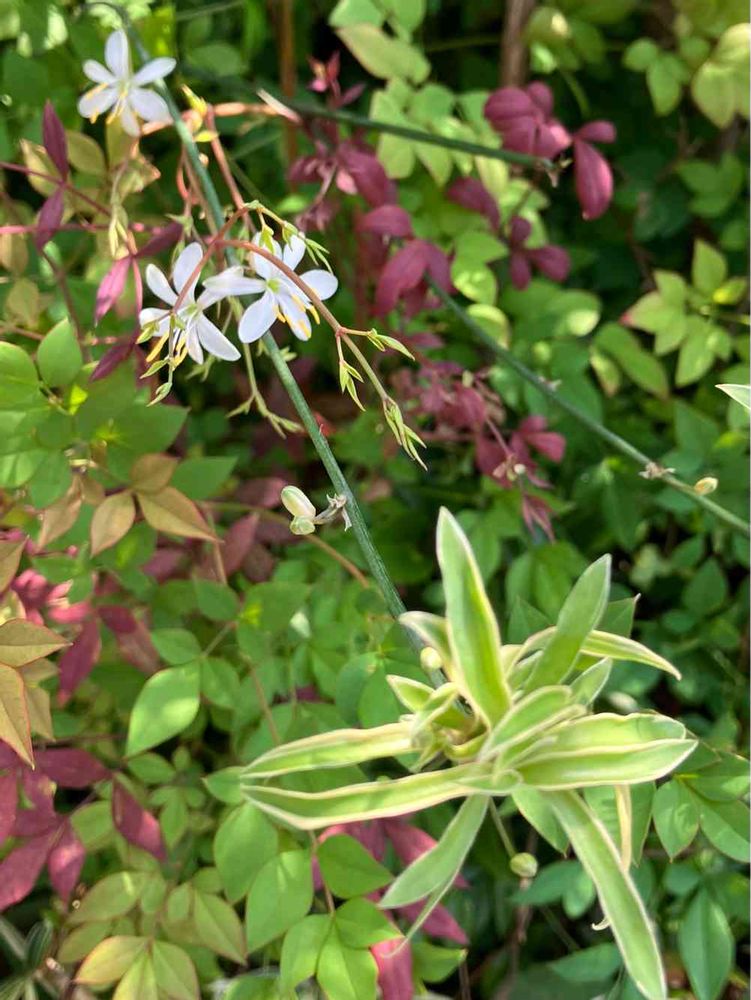 ほたるぶくろさんのオリヅルラン,白い花,散歩道での投稿画像