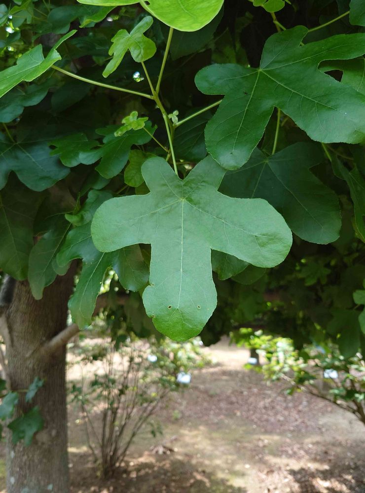今月はじめに撮りました📸 この葉っぱの形、先っぽが丸っとしていてなんともユニークでかわいいです。「モミジバフウ ロタンティローバ」という名前だそうです。たしかに形はモミジふうですけどね🤭(農業試験場にて)