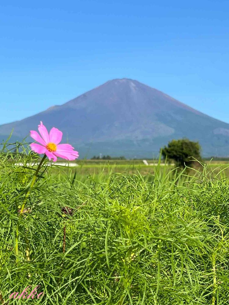 富士山に一輪のコスモス💕