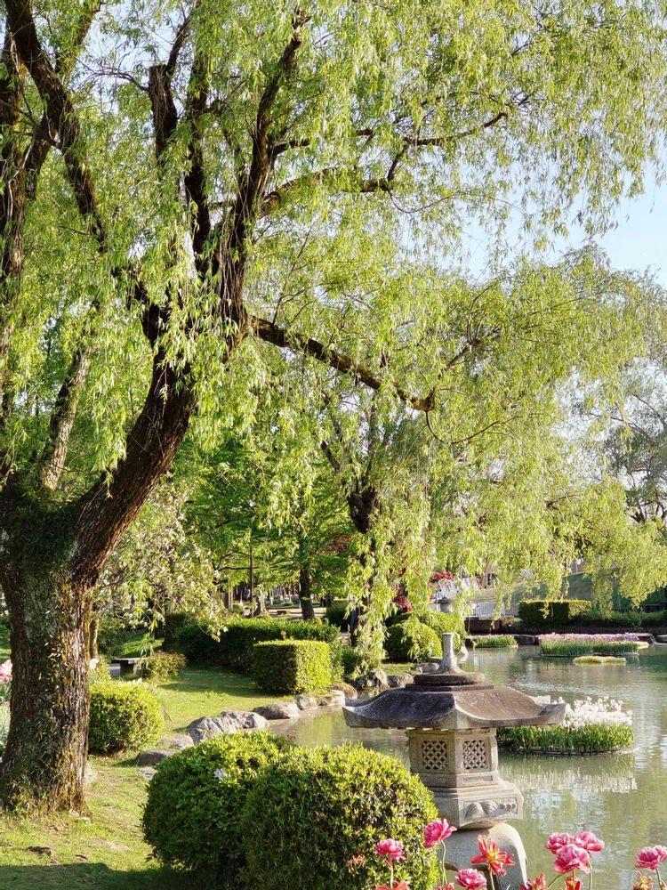 この水辺は 富山県の砺波チューリップ公園の柳です🌳