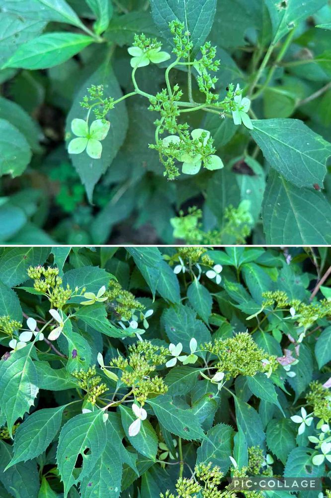 山で自生してる「ヤマアジサイ」はほとんどが白花ですけど、中に花序全体が緑色💚のものがあるんですよねえ😍