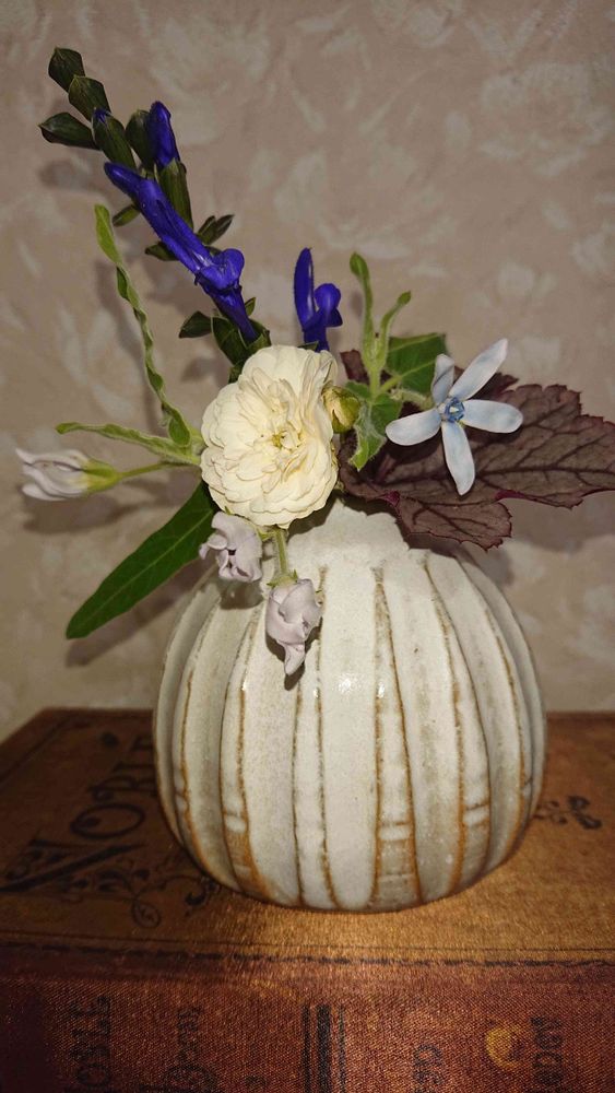 小さなお花が可愛らしい花瓶に入りました。主役が決まらない感じがしました。