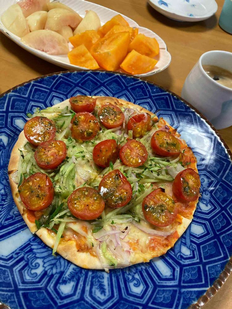 よく見るとこれ、ピザにきゅうりがのっているのですか⁉️ ラディッシュも!