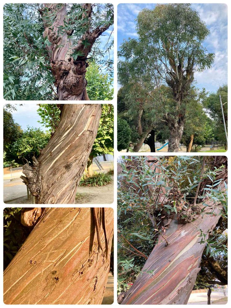 根木内小学校の裏にある"つばめ公園"にはユーカリの木が周りに植えられている。幹の模様が美しい。