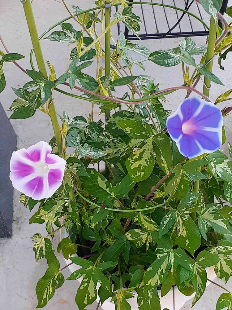 斑入りの朝顔、昨年花友さんに頂いたんですよ😊