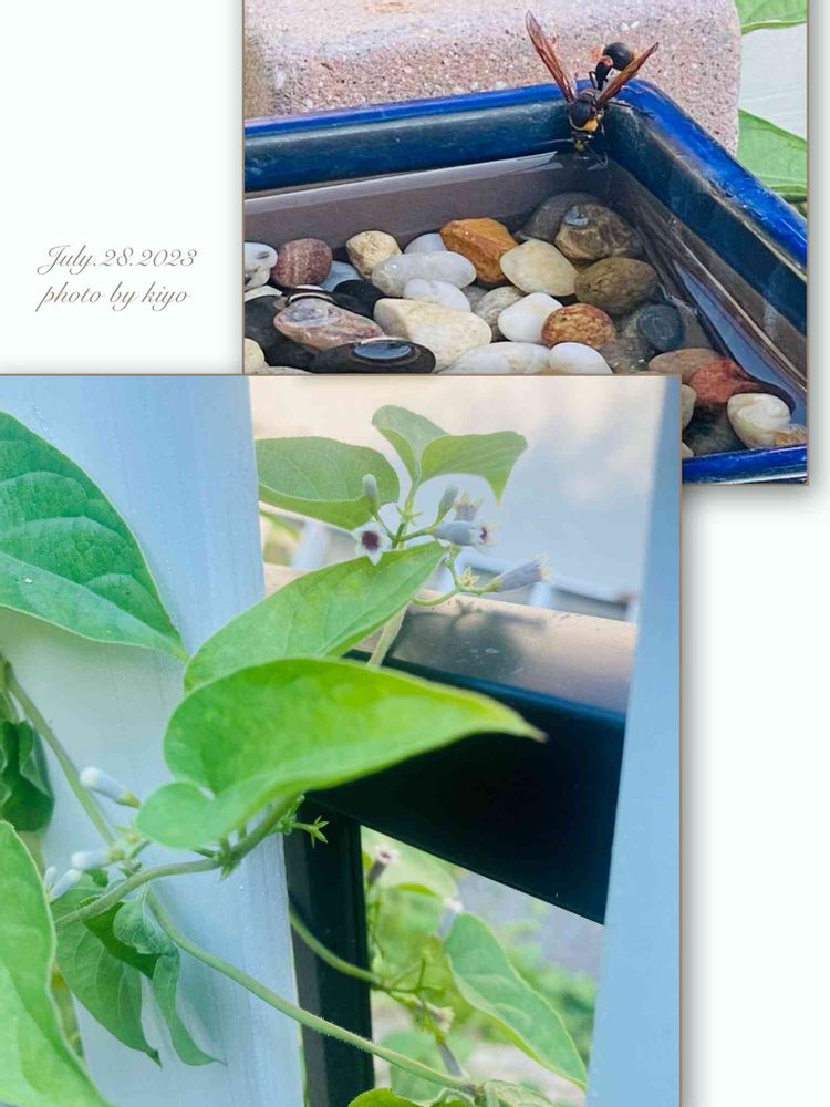 昨日の昼間、蜂さんが水を飲みにきました🐝