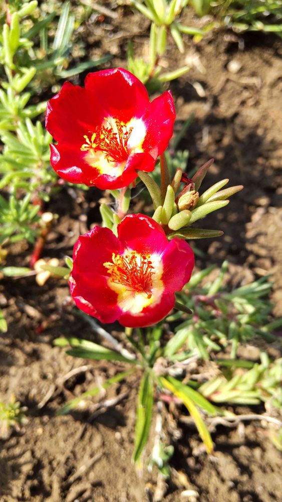 真っ赤なマツバボタンが、2輪並んで咲きました。