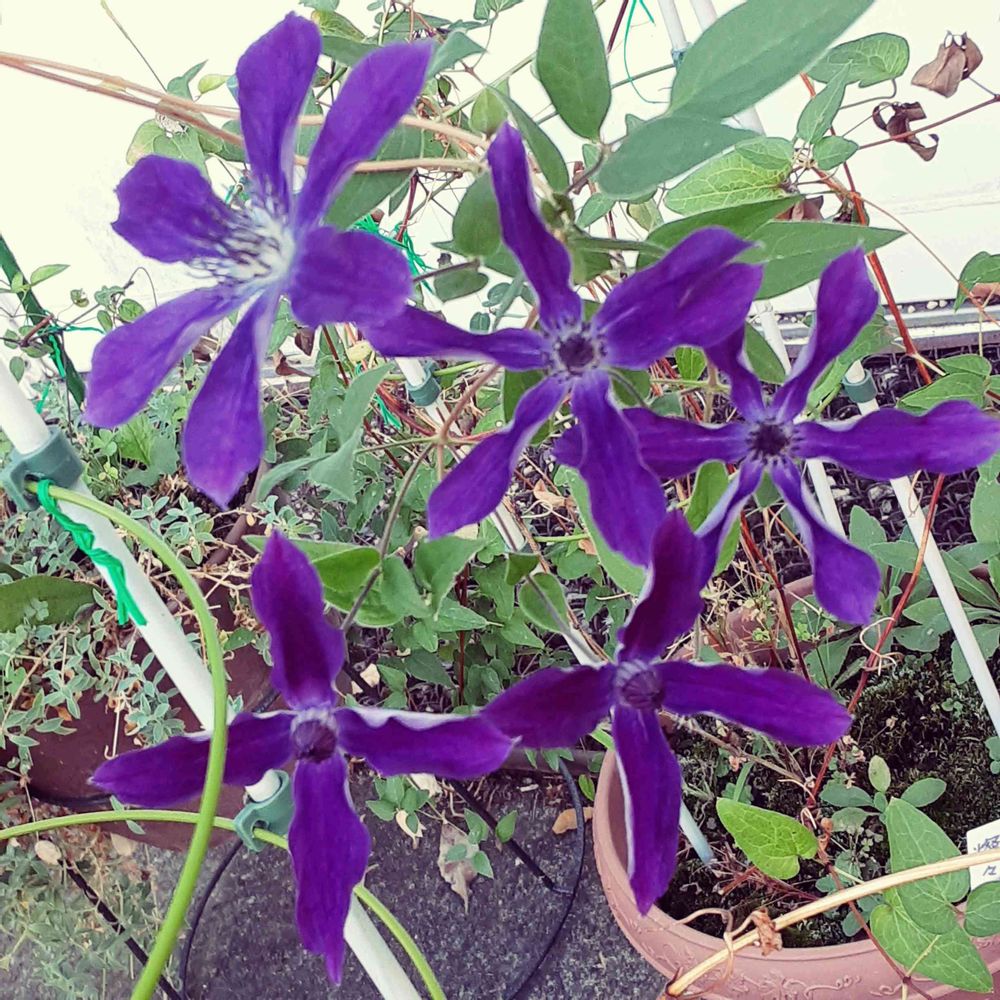 花びらが4枚、5枚、6枚と色々ですが、本来の花色と同じような濃い紫💜で素適𓂃٭❀