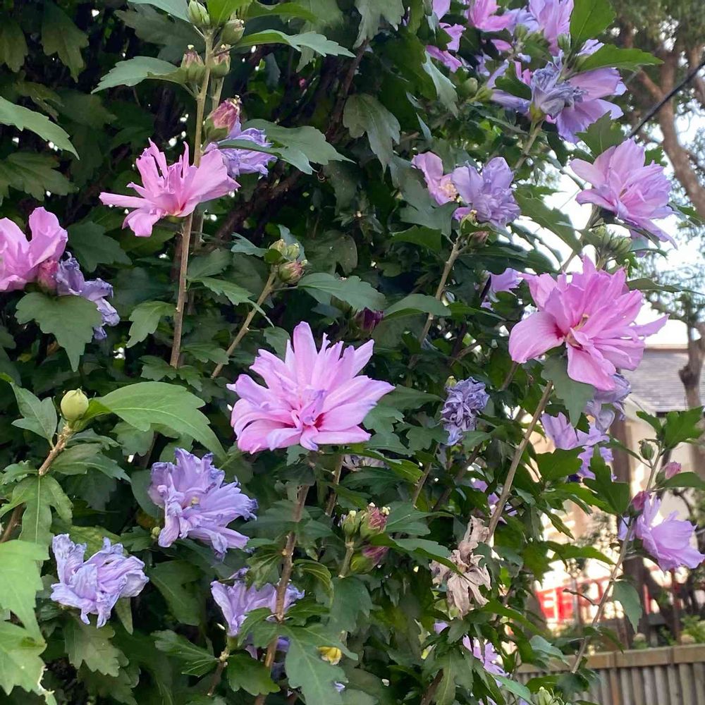 通勤途中に咲いているムクゲがグラデーションに咲いて綺麗です。
