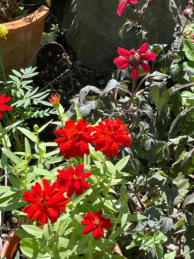 夏に元気な代表格のジニア❤️花友の叔母が種まきして分けてくれました♪モリモリ咲きます‼️