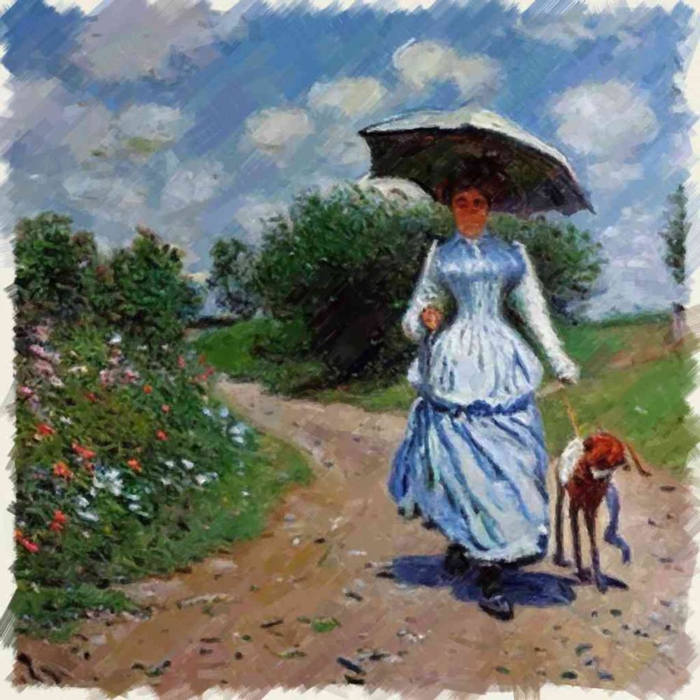 10K,高品質,写実的,油絵, クロード・モネ の新作,全体的, 日傘をさす女性