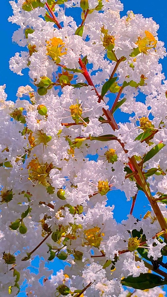 この白いサルスベリのお花は、まるで雪が積もった様に見えて涼しげですね🤍🌿💦まだ、私は白色には出会えて無いので、見せて頂き嬉しかったです❣️