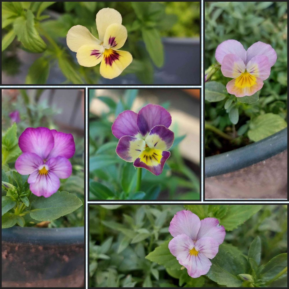 ビオラ💜💛こぼれ種の苗が、あちこち🌱🌱この時期だから、ちっちゃいし徒長した姿🌿花は、ちっちゃくて可愛いよ😂