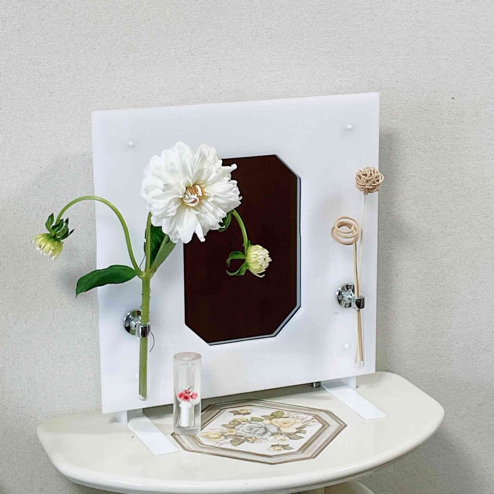 インテリア仏壇「鏡壇ミラリエ」「鏡壇ミロワ」に今日(7/29)の誕生花の「ダリア(天竺牡丹)」 を飾ってみました。