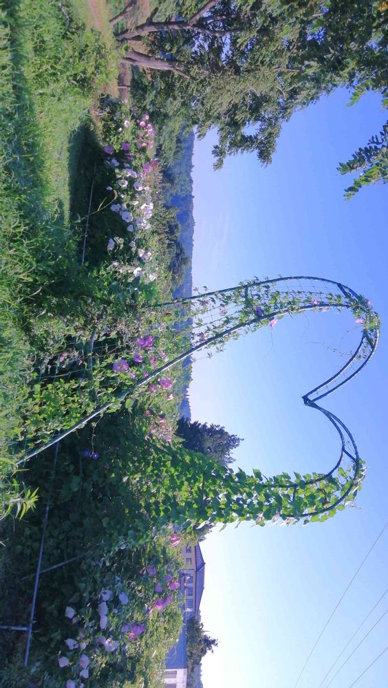 薔薇アーチのツル薔薇が枯れてしまったのでアサガオを登らせてみました(^_^;)