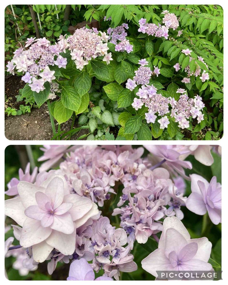 去年衝動買いしたハイドランジア ウエディングブーケ咲いています🌸ここはジューンベリーの足元で、半日陰になるかと思いますが、日が当たるのは西日ですね😊ここでも大丈夫そうですね🥰