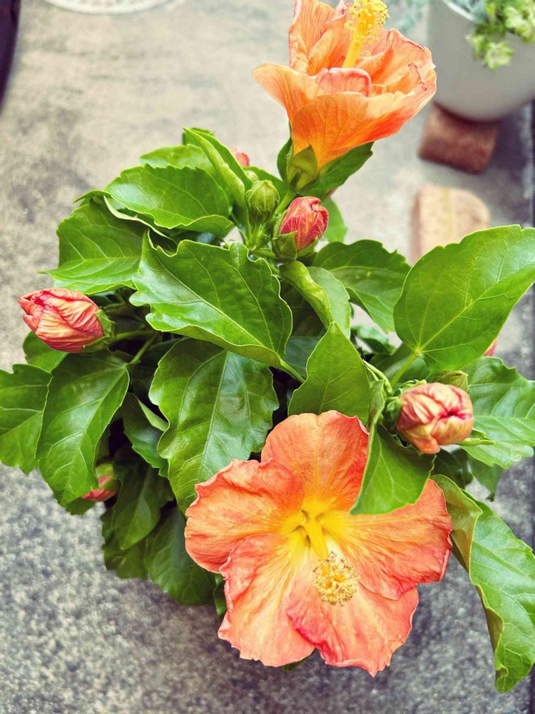優しい色で、花も小ぶりのハイビスカス🧡💛