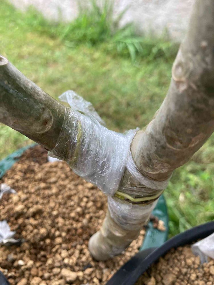 そんなカリフォルニアサンセットですが半分折れた場所を梱包ラップで巻いて固定してた場所から根が:(;゙゚'ω゚'):