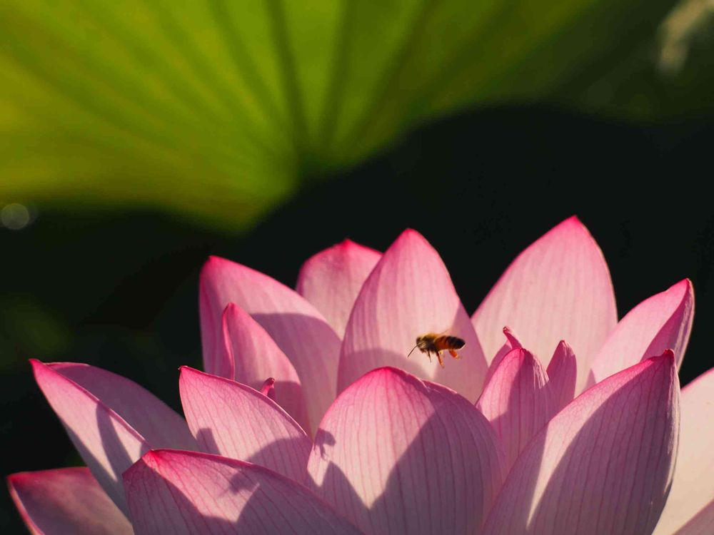 神聖な雰囲気を漂わせる蓮の華やぎに、やって来た蜂🐝とのコラボ良いじゃん🎵