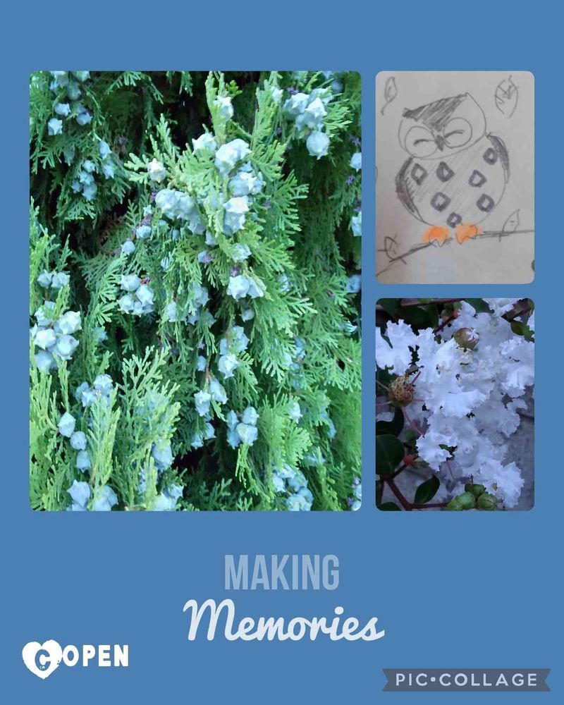 こぺんちゃん コラージュのフクロウ🦉さん可愛い〜❣️ね〜 コノテガシワも 涼しげでいいね〜 俳句も 座布団5枚 素敵だよ〜