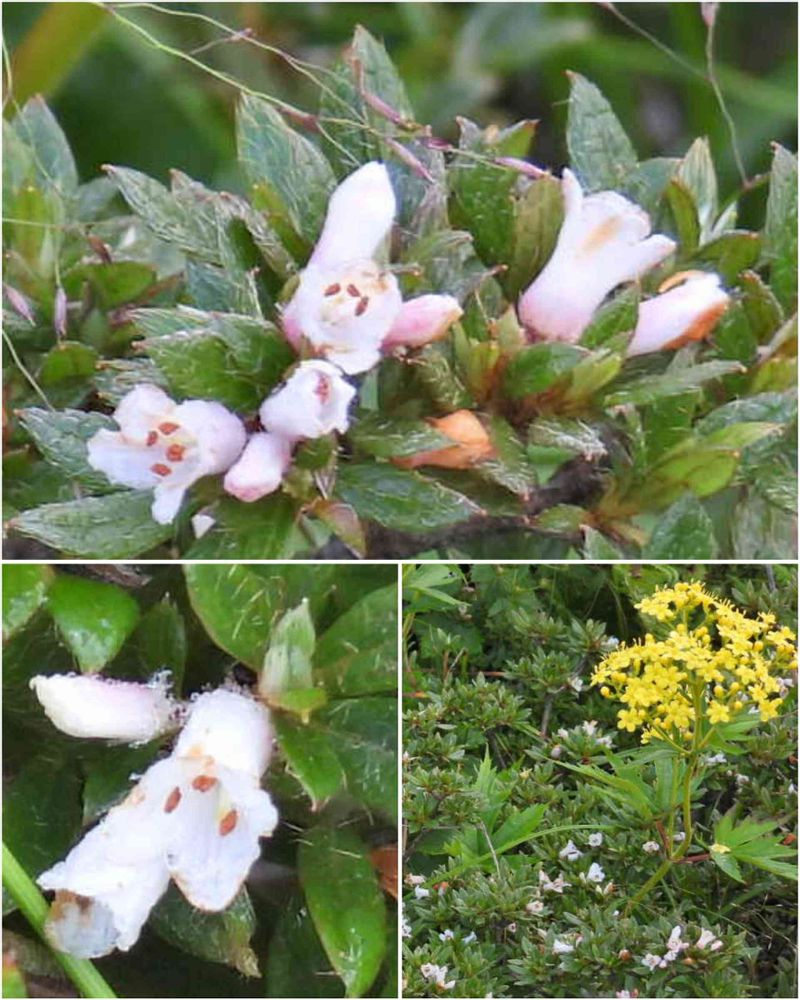 ↘️はコキンレイカとチョウジコメツツジが一緒に写ったもので、チョウジコメツツジの花は小さくて粉雪のように見えます。