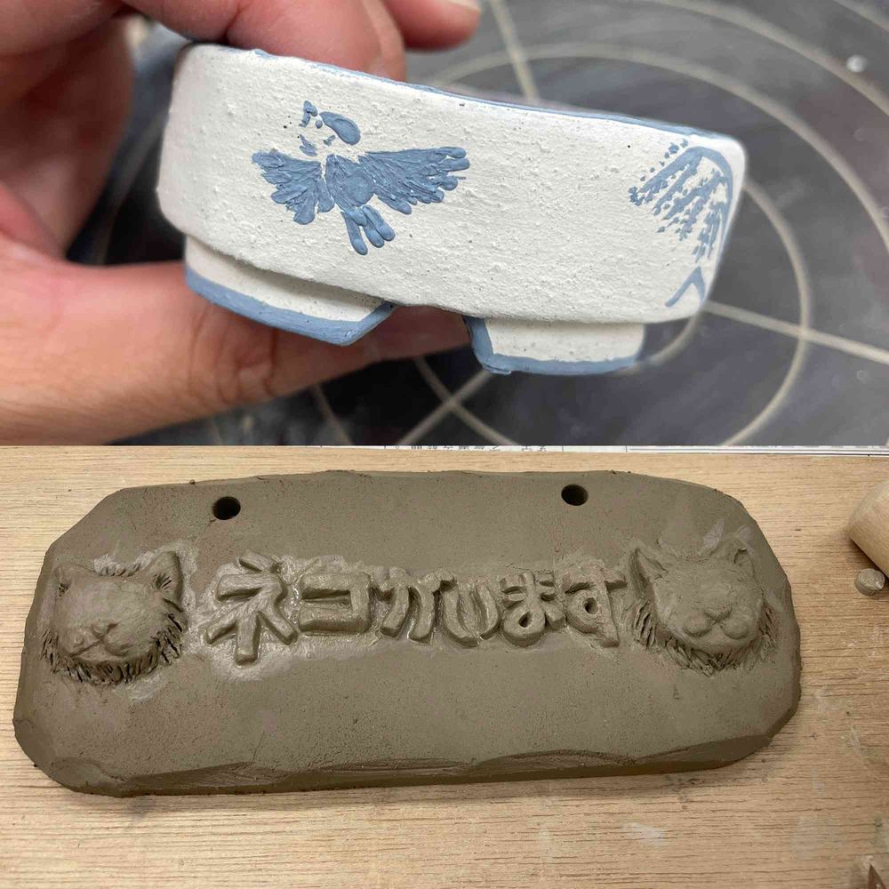 白泥を塗って呉須で絵を描くようになりました、、今回はすずめと稲穂です秋っぽさを演出出来たらな、、と😅