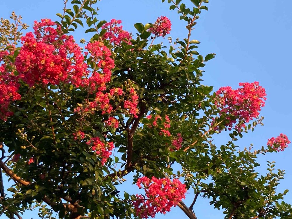 夏空に映えるサルスベリ。あちこちで見かけるようになりました。
