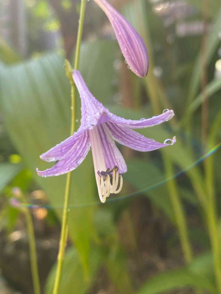 ネタ切れ気味で、今日はどうしようか💦と思っていたら、水を上げているときに、屋久島姫擬宝珠(ヤクシマヒメギボウシ)が咲いているのを見つけました😄