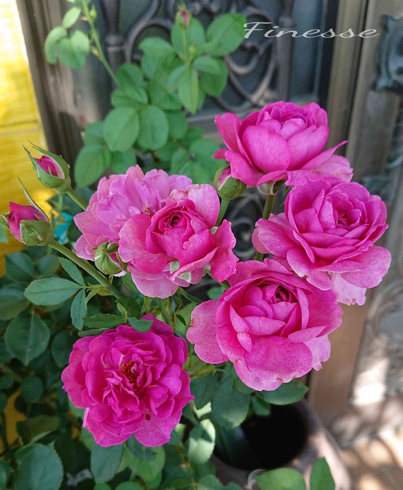 炎天下ですぐにチリチリになってしまうので玄関前に移動したフィネス🌹