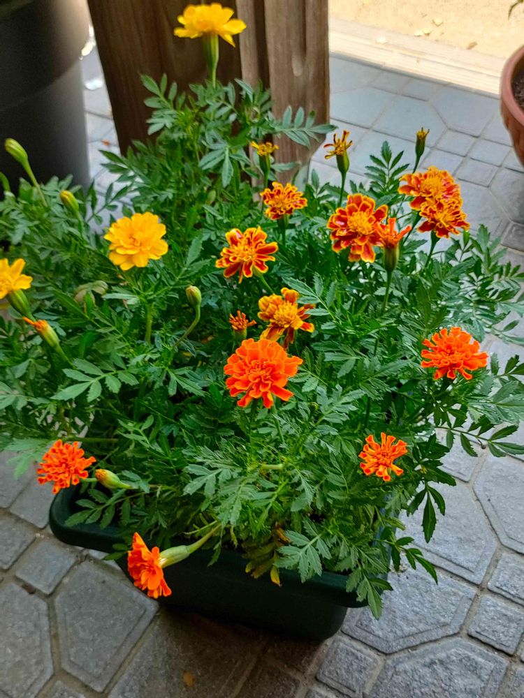玄関口に置いてるマリーゴールドのお花です💛