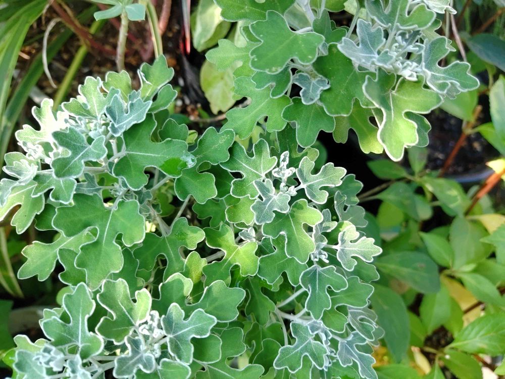 葉の裏に白い毛が生えているので、縁取りのように見えて涼しげです。