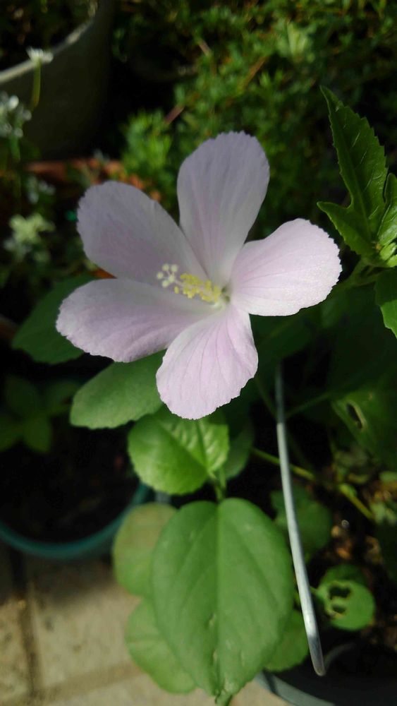 原種ハイビスカスが咲いた。芽吹いた苗を育てたら、可憐なピンクの花が。