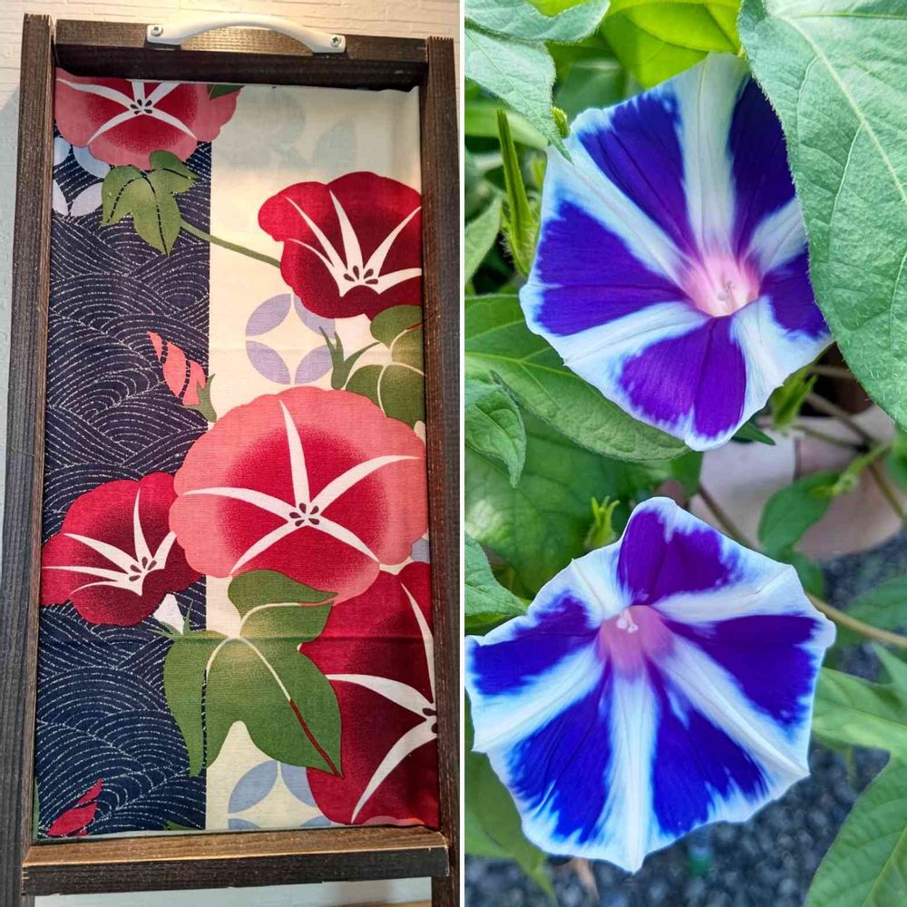 綺麗な朝顔💠手拭いの凝った設え🙌
