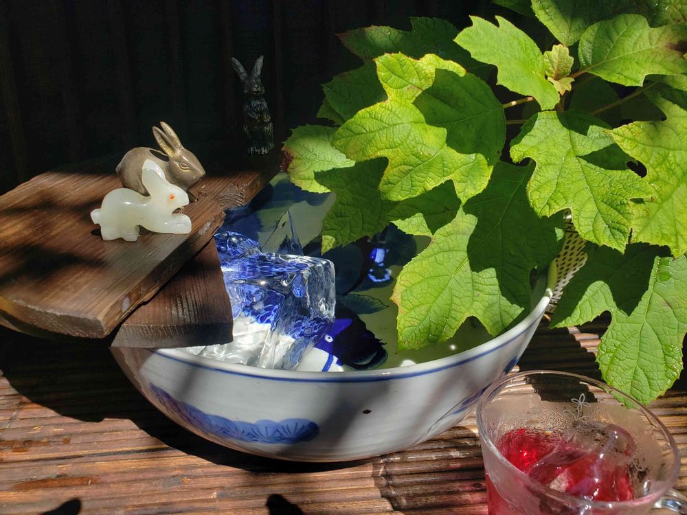 大鉢とカシワバアジサイの葉がお似合いですね💙涼しそう💙大鉢もっとみてみたいです!紫蘇ジュース夏はこれ‼️