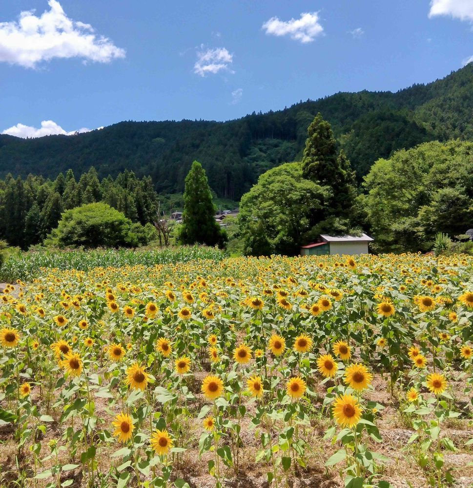 よちよちさんのお出かけ先,ひまわりの畑,青空の下の投稿画像