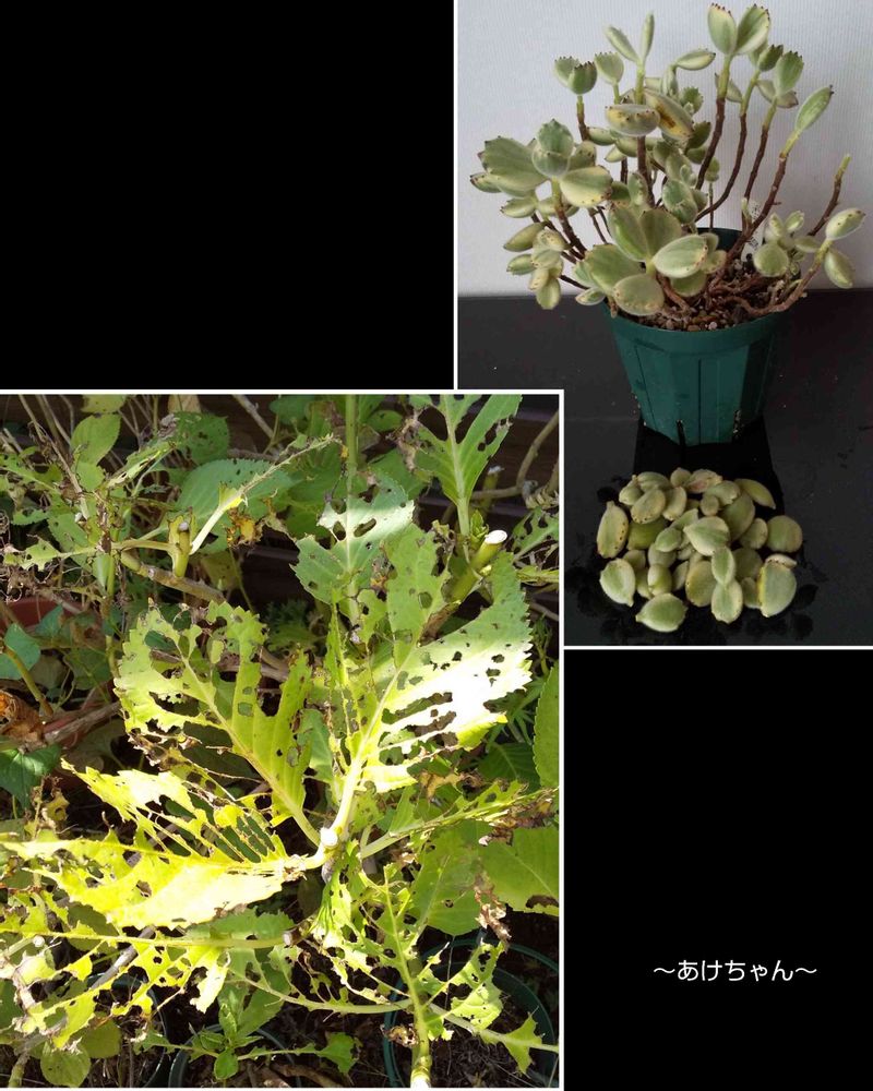 上:毎年夏に痩せ細る「熊童子錦」(個人的には羨ましい?)