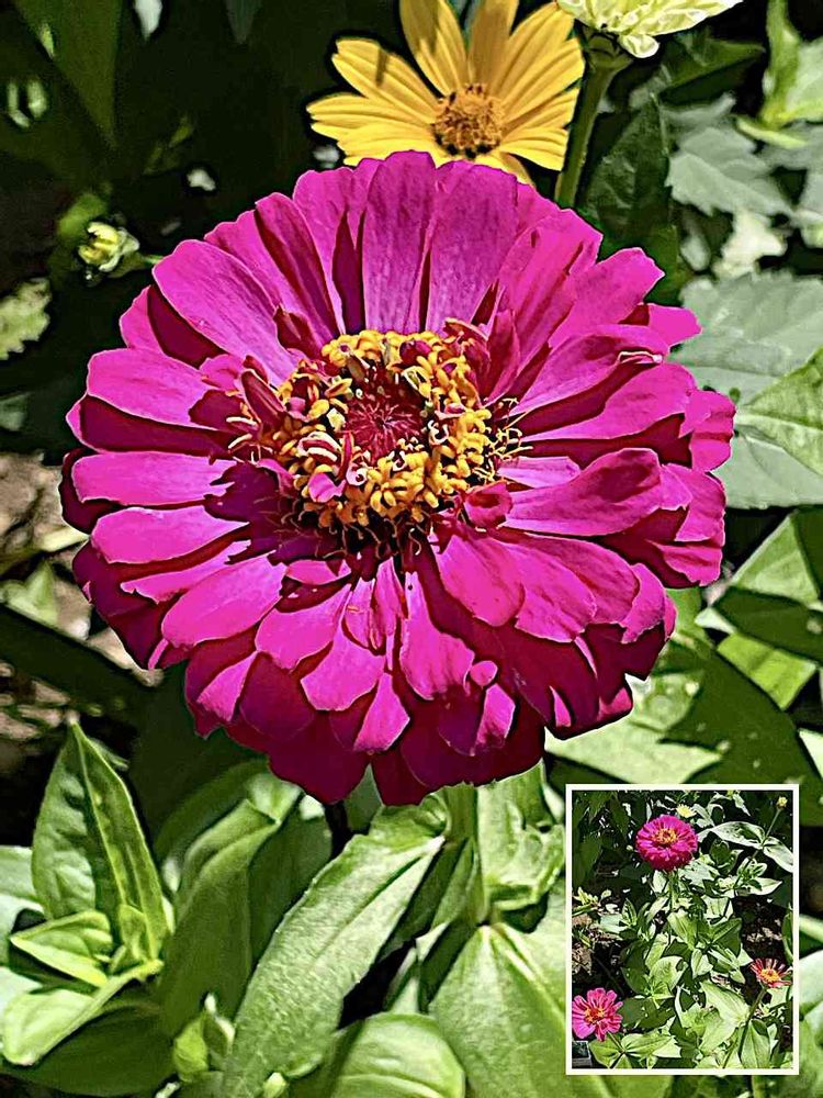カタバミさんのお出かけ先,ヒャクニチソウ(百日草/ジニア),/スッと伸びて茎頂部、いつの間にか赤ピンクの頭状花/の投稿画像