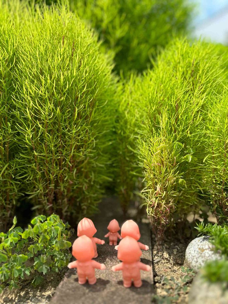 キューピーちゃんご一行様、暑くて今日はみんな裸ん坊😆こんな暑い日は、畑よりも森の方が涼しいから良いと思うよー☺️でも、森には蚊もいるから、刺されないようにね😄