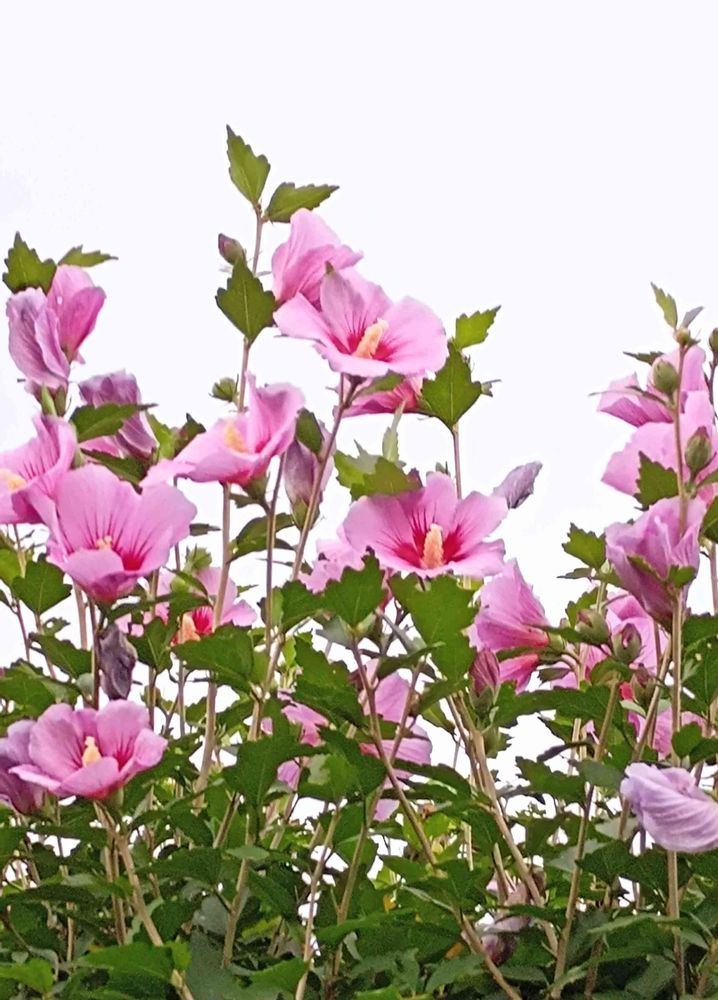 ピンク紫のムクゲさんとても可愛いですね💗💜葉っぱもグリーンカーテンのように繊細ですね💚💚💚「高円(たかまと)の野辺の容花(かほばな)、面影に、見えつつ妹は、忘れかねつも」大伴家持(万葉集)🌟※容花(かほばな)とは、アオイ科、むくげ、ルコウソウなどの昼顔、カキツバタ、ハイビスカスなど🌟容花のようなあなたの面影が忘れられないのです🌟今日も清々しい一日をお過ごし下さいネ💐💐💐