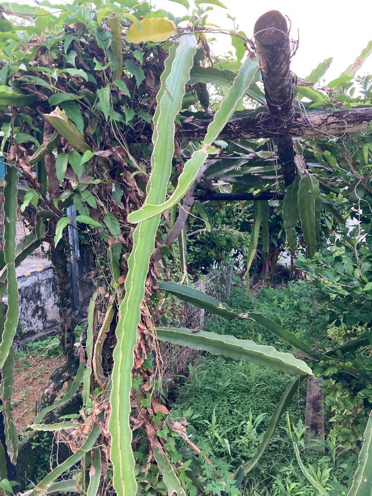 ドラゴンフルーツ(サボテン科)🌵 実にはカリウムが多く含まれている為、高血圧予防になり、葉酸も多く含まれているので、貧血にもよいそうです🏜7/9早朝@那覇市🤳