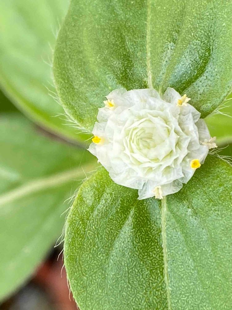 千日紅のお花が咲いたのをアップにすると、葉にはうぶ毛が😊