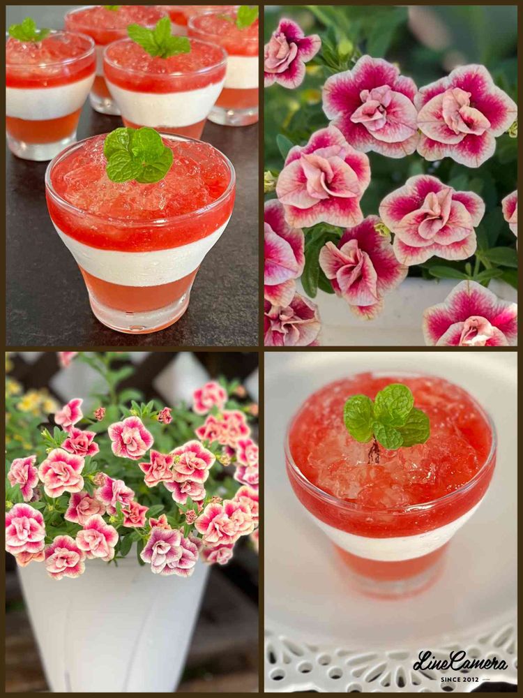 このすももゼリーに赤いお花だとどんなお花が合うかと考えたらプチホイップが赤×白でお似合いだと思いコラボしましたよ❣️❣️