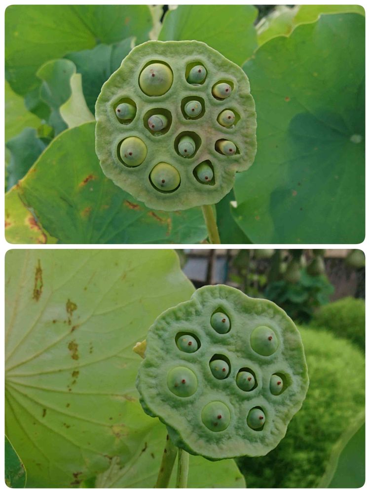 蜂の幼虫も同じ様に上に向いて成長しますけど、ハスの場合は中の種はどうなるのてすか?乾いてポトッて落ちて芽を出すのかな〜🤔