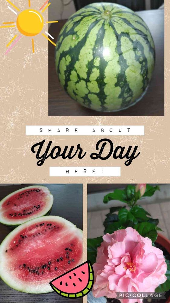 今日は孫守りは今日はお休みです✨今朝収穫して来たスイカ🍉割ってみました!大きさの割には熟れ方が早過ぎ!しっかり熟してますが、皮の方はまだ厚みがありますね😆もう少しゆっくり熟してくれると良いのに、お多福ガ―デンは、日当たり良好でで、長雨の後、一気にお天気続きで、熱すぎたかしら🤗糖度はバッチリ、甘い!って主人は言ってました、おやつに頂きます😋🍉🍉🍉🍉🍉🥵。今朝開いた、ハイビスカス🌺です✨。