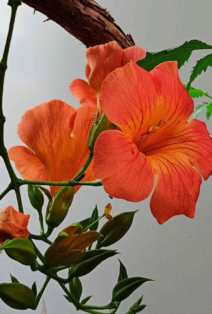 小さな庭のノウゼンカズラ、咲き終わった筈なのに、新たな蕾と花が咲いていました。