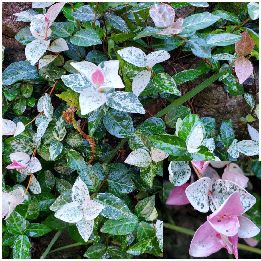 初雪葛がまるで白やピンクの花を咲かせているようです。