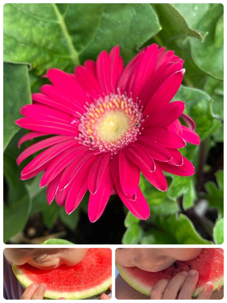 かぶりつくと ほっぺがまん丸く見えるんだ🍉と驚きました
