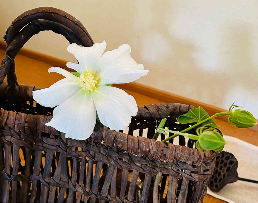 日本芙蓉の白い花…珍しいねぇ…🤍🤍🤍🤍🌿