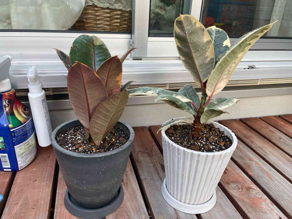 今日はダイソーのゴムちゃん達を植え替えた!フィカスティネケとベリーズと思うんやけど、わからない…